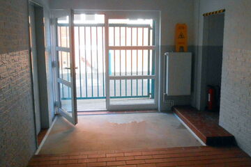 Im Rahmen der Sanierung des Erdgeschosses der Feuerwache 1 erfolgte eine umfassende Modernisierung. Die Maßnahmen umfassten die Implementierung einer neuen Schlauchwaschanlage, die nicht nur die Einsatzmaterialien effizient reinigt, sondern auch zu höheren Hygienestandards beiträgt. Die Eingangssituation wurde angepasst, um sowohl funktional als auch ästhetisch den modernen Anforderungen gerecht zu werden.