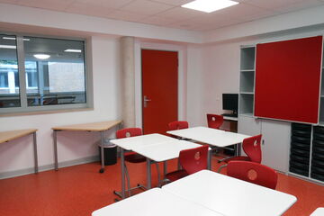 Die Differenzierungsräume sind in robuster Massivbauweise ausgeführt. Die großzügige Pfosten-Riegel-Fassade trägt nicht nur zur modernen Optik bei, sondern ermöglicht auch eine helle und freundliche Atmosphäre im Inneren der Räume. Dieses Projekt wurde unter besonderen Herausforderungen umgesetzt, da der Bau während des laufenden Schulbetriebs stattfand, welcher ungestört weiterlaufen musste.