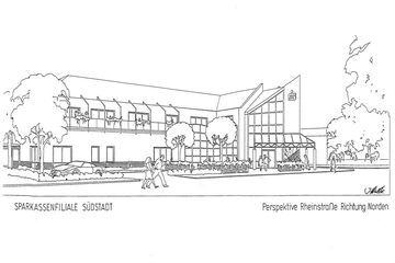 Unser Entwurf wurde als Wettbewerbssieger für den Neubau eines repräsentativen Sparkassengebäudes ausgewählt. Das Gebäude umfasst im Erdgeschoss eine moderne Sparkassenfiliale, im 1. Obergeschoss fünf Wohnungen und im Dachgeschoss Abstellräume sowie einen freien Dachboden.